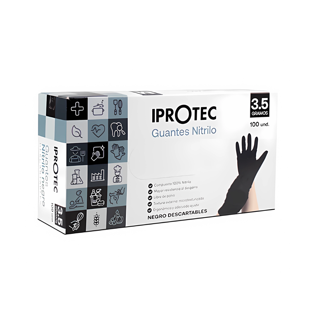 • Guantes descartables de nitrilo, resistentes y libres de látex.